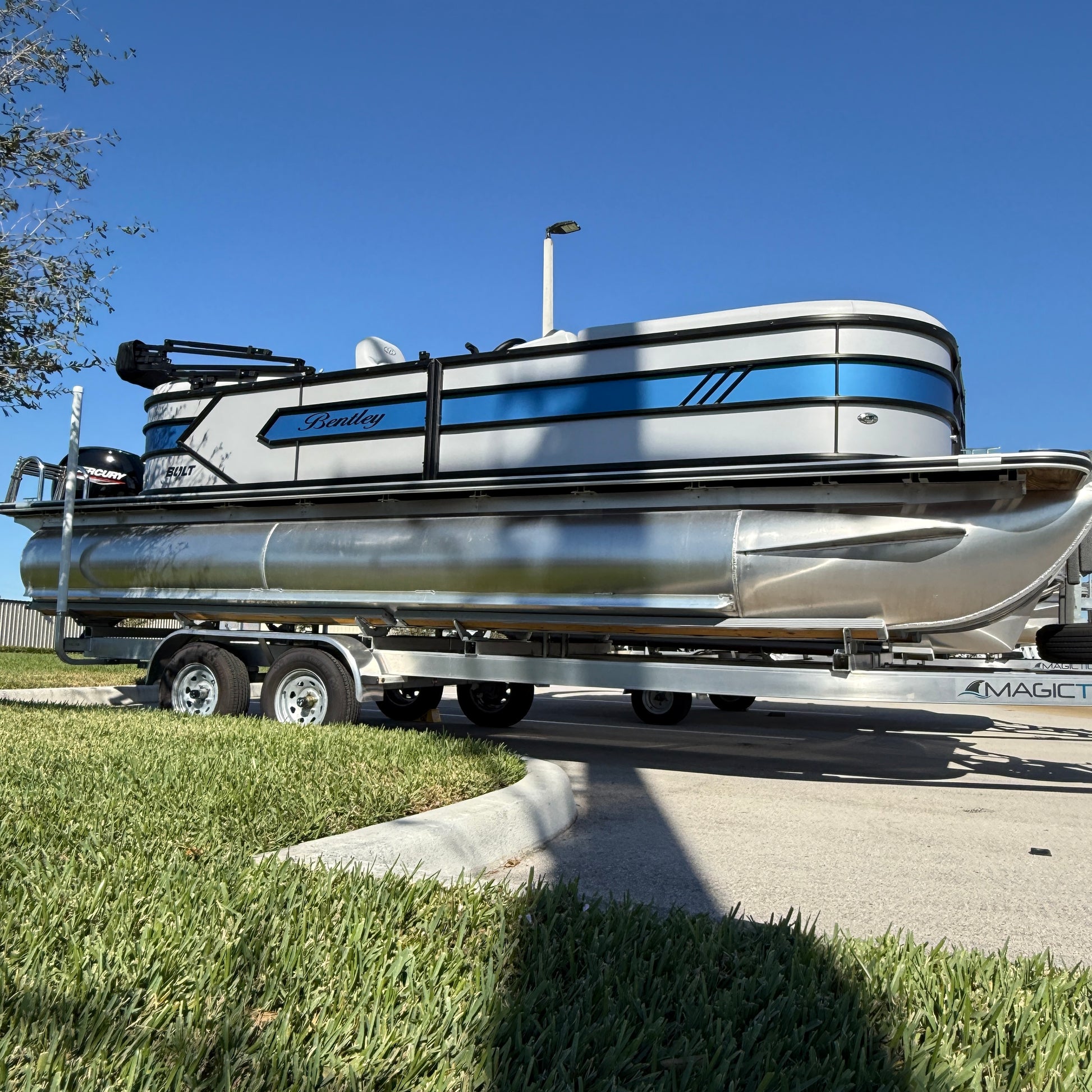 Unleash the thrill with the Bentley Bolt. Designed for water enthusiasts craving an affordable yet sporty adventure, the Bentley Bolt is a brand-new triple toon that delivers an exhilarating ride, reaching speeds in the mid-40s mph range. Its advanced triple toon design, enhanced with lifting strakes, offers superior maneuverability and a smooth, controlled experience even at high speeds. Sporty, sleek, and built for excitement, the Bentley Bolt is ready to make waves.